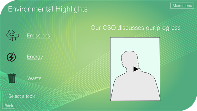 User-friendly interactive video featuring highlights from a company’s Sustainability Report. The viewer can select which ESG topics to deep dive into. The interactive video makes report content more accessible and compliments full report PDFs.