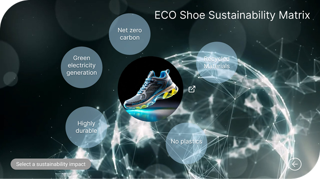 An interactive digital user experience showcasing how a company’s innovation powers sustainability. The tool showcases product sustainability advantages and allows users to explore their personal product use footprints in an engaging way using gamification. For events and web.