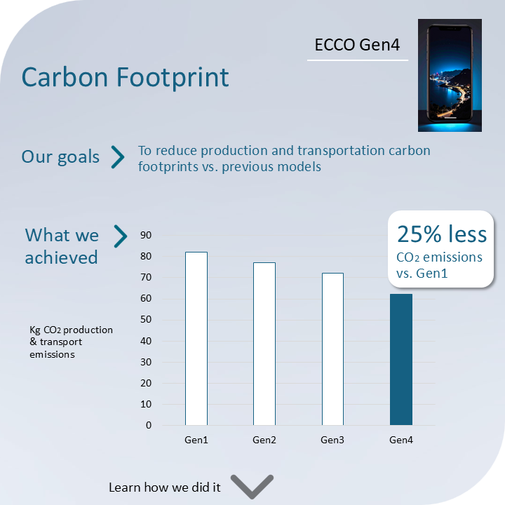 Compact, product-specific sustainability stories highlighting a product’s sustainability features. Readers learn about the sustainability goals for the product, what the company did to achieve this goal and the results. PDFs for download, accessible via webpage and QR code.